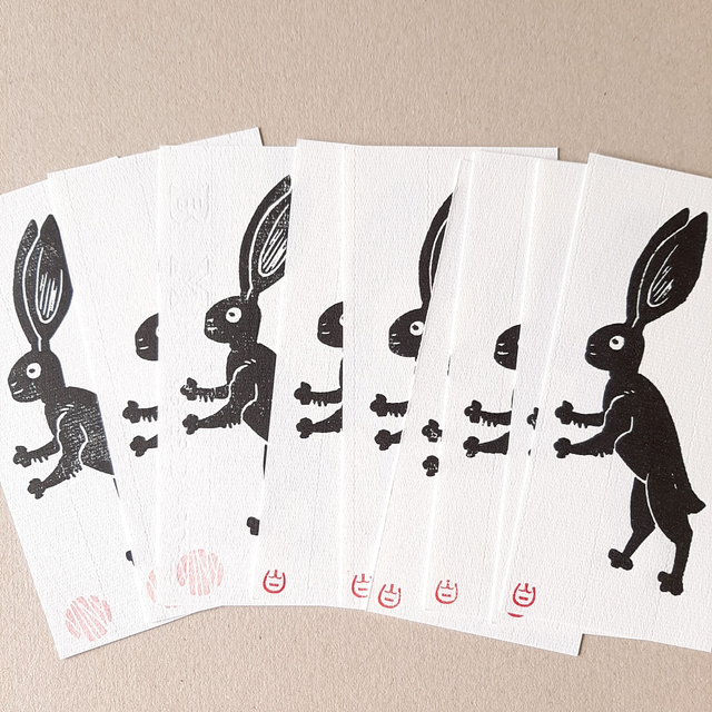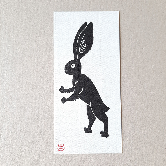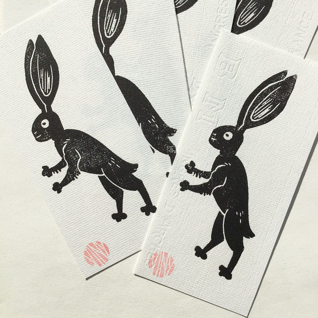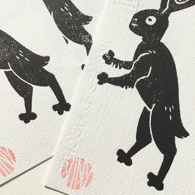 Linogravure noir sur papier blanc texturé